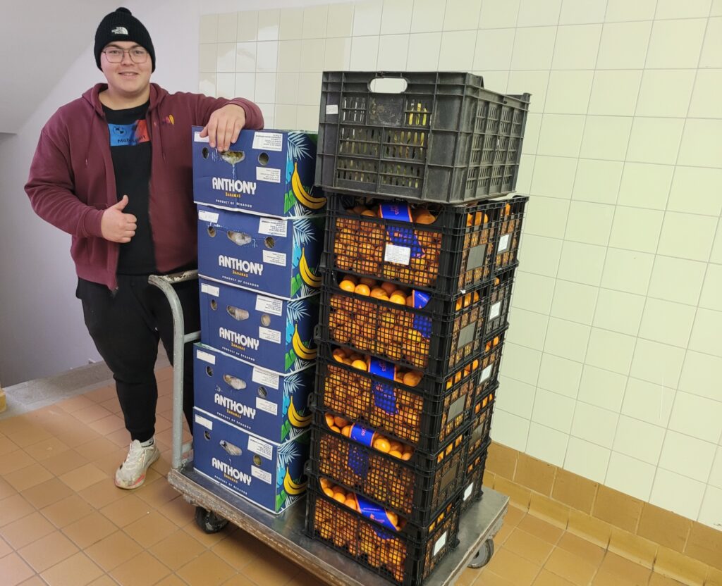 A képen: Ifj. Mellis Csaba az adományba szánt gyümölcsökkel, amiket a következő napokban osztanak majd ki a fekvőbeteg osztályokon.